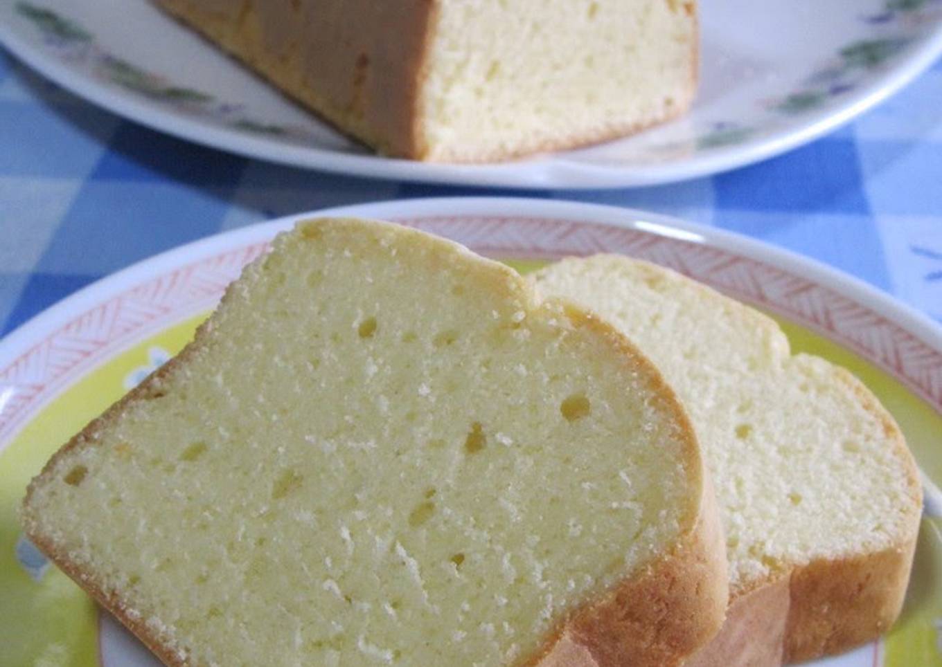- A fluffy oil-free pound cake is done.
