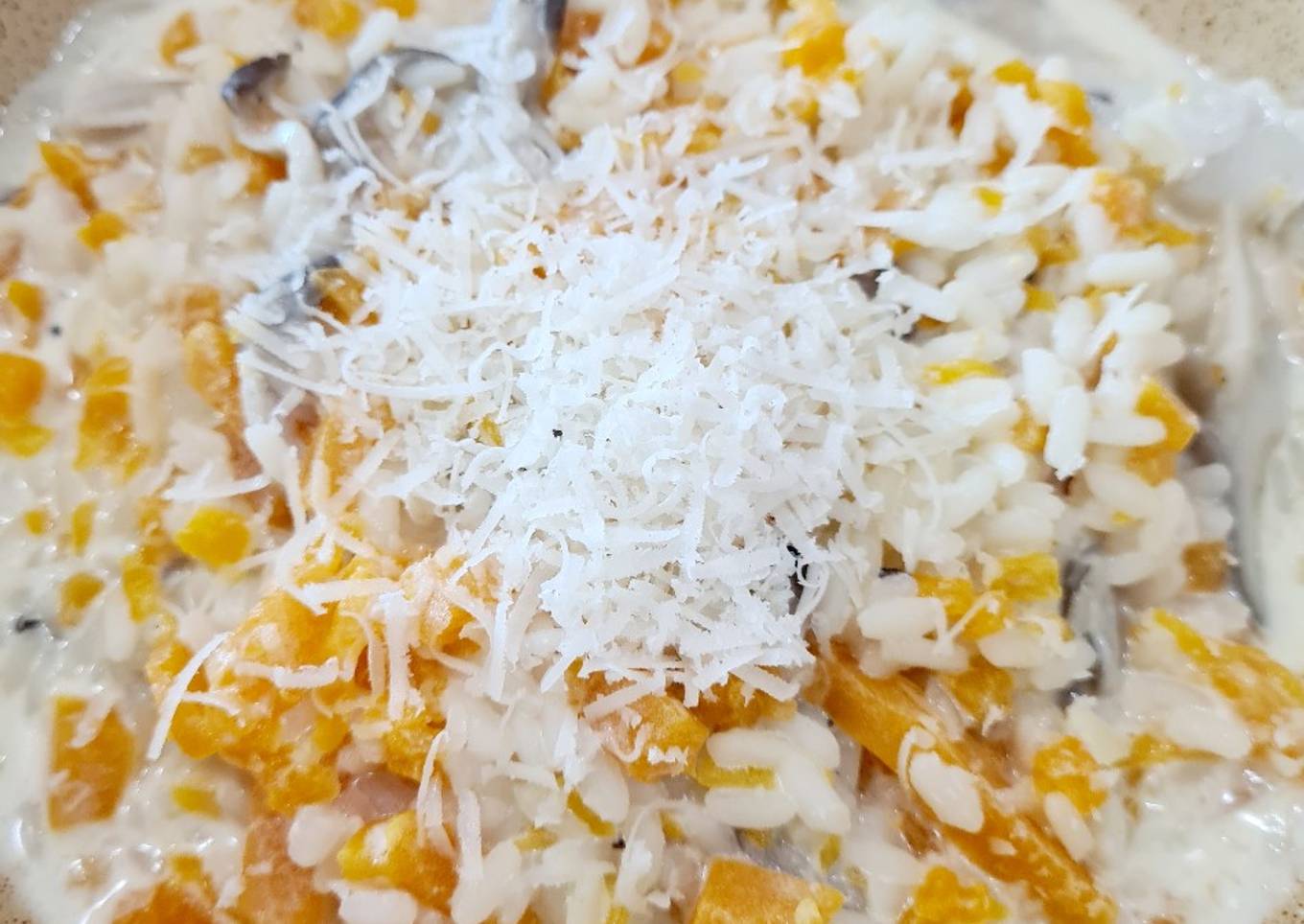 Just in addition, the time it takes to cook Creamy Risotto with Pumpkin, Mushroom and Gorgonzola Cheese estimated approx 15 mins.