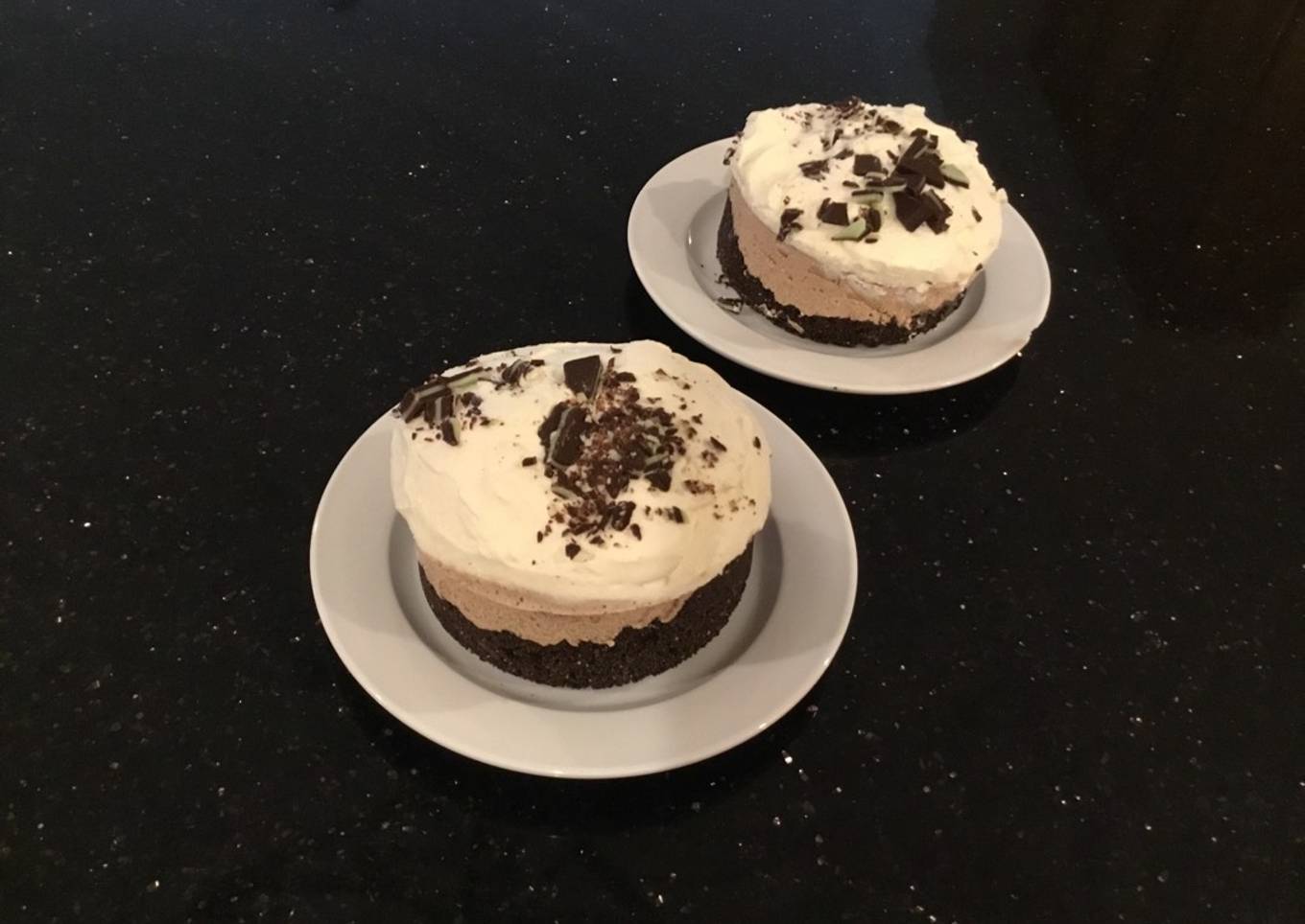 Cool. Creamy. Refreshing and easy to make. Individual mint cream tarts are really festive and can be made ahead . If you don’t have individual spring form pans a 8 inch one or 8 inch cake pan will also work although the cake pan will have to be cut in the pan.