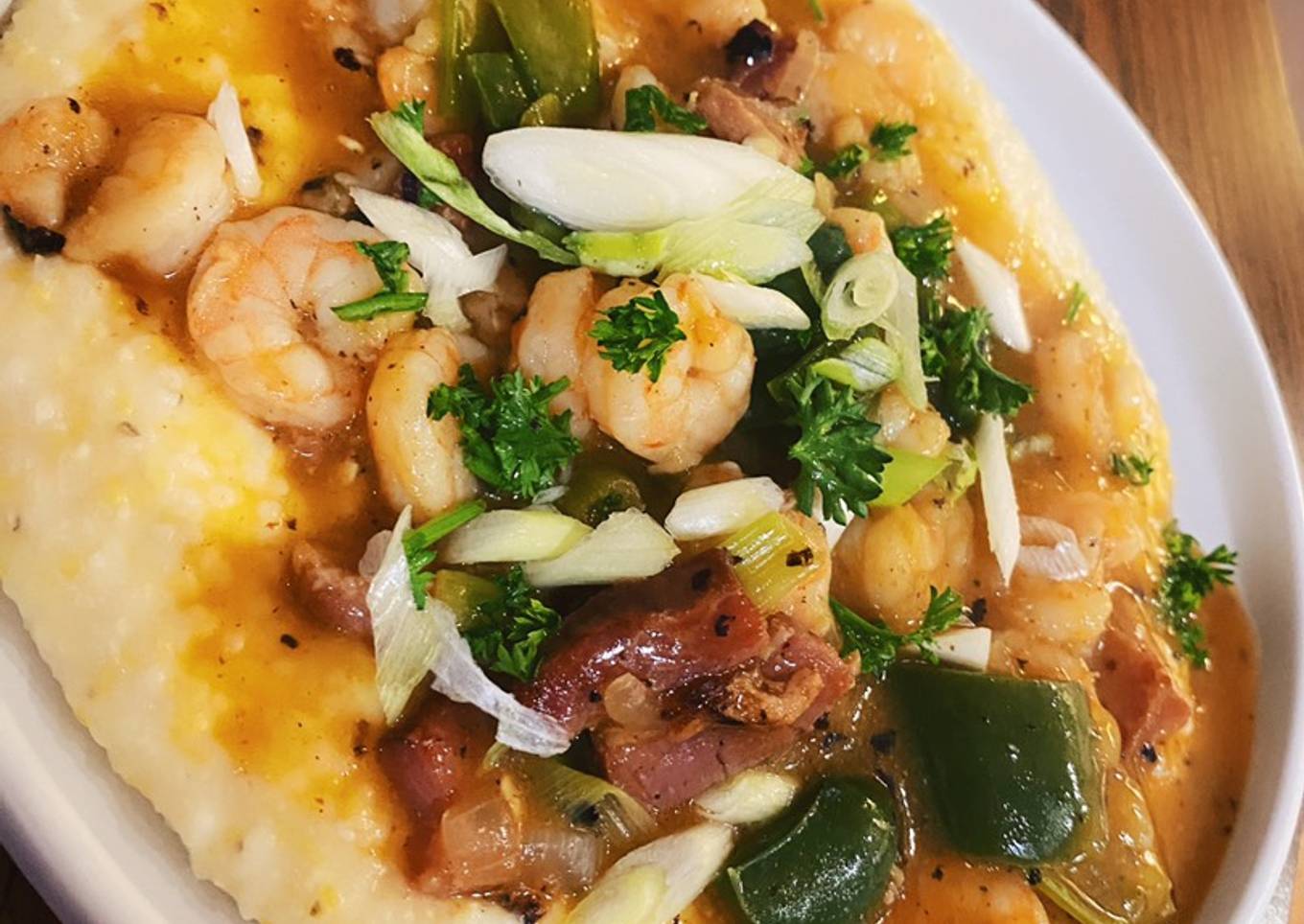 - Plate grits and top with shrimp mixture. Garnish with scallions and parsley and enjoy! 🤤