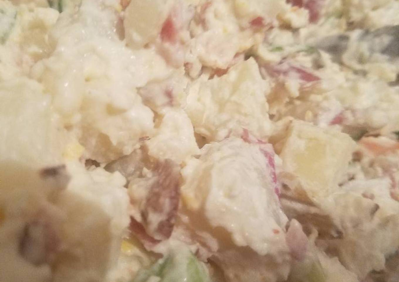 Hello everybody, hope you're having an amazing day today. Today, I will show you a way to make a distinctive dish, Loaded Potato Salad. It is one of my favorites food recipes. For mine, I am going to make it a little bit tasty. This is gonna smell and look delicious.