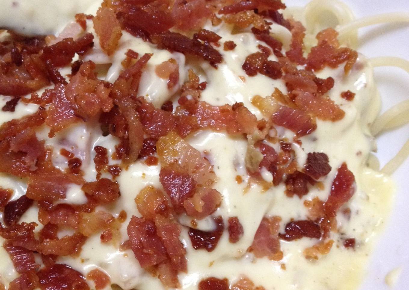 Instructions to make to make Bacon & Ham Carbonara Hack - no eggs